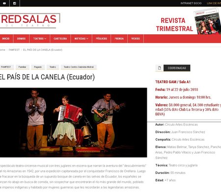 Teatro, circo y música se unen en esta creación de la compañía ecuatoriana Círculo Artes Escénicas, dirigida por el chileno Francisco Sánchez, de Tryo Teatro Banda.