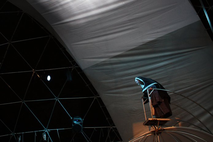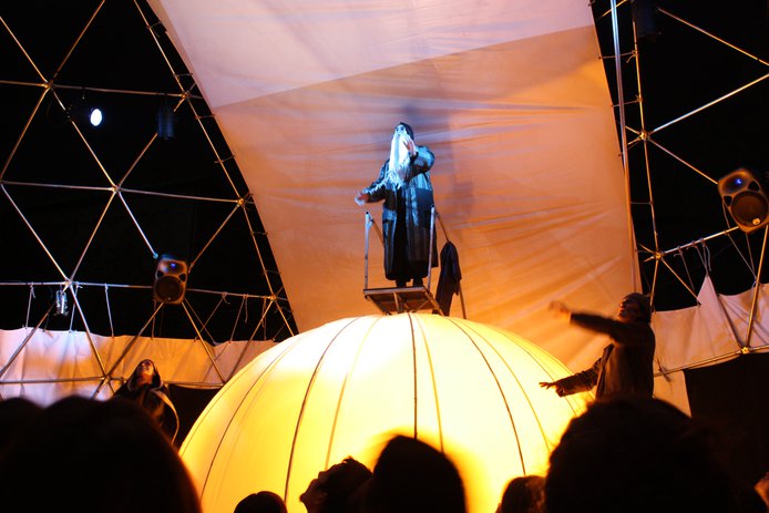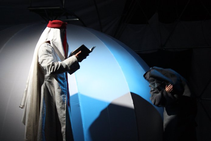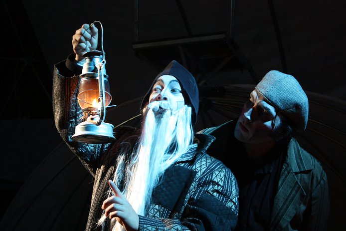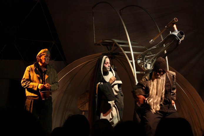 En este mágico montaje sobre la vida y obra de Galilei, el público se sitúa en medio de la acción, siendo espectador y parte de la puesta en escena mientras imágenes cósmicas ocupan el cielo.