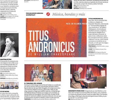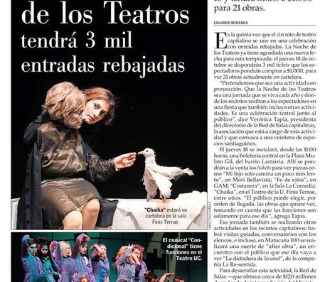 $ 1.000 Gral. previa compra desde las 11 h en Plaza Mulato Gil, Barrio Lastarria el día 18 de Oct. Venta máximo cuatro entradas por persona, solo en efectivo.
