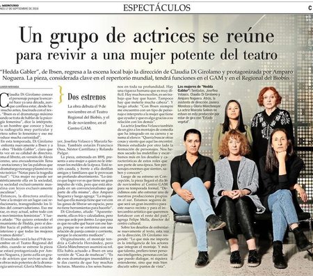 “Hedda no quiere conformarse con los roles que le ofrecen, ni acceder al mismo lugar de los hombres en un mundo construido por ellos, tampoco puede rebelarse con un discurso político ni social, porque no lo tiene. No es una feminista. Es la chispa del feminismo. Ella intuye fuertemente que, en esencia, no tiene un espacio de identidad en una sociedad que la educó en una estructura conservadora, y tampoco tiene las herramientas para luchar contra eso”, dice Di Girolamo.