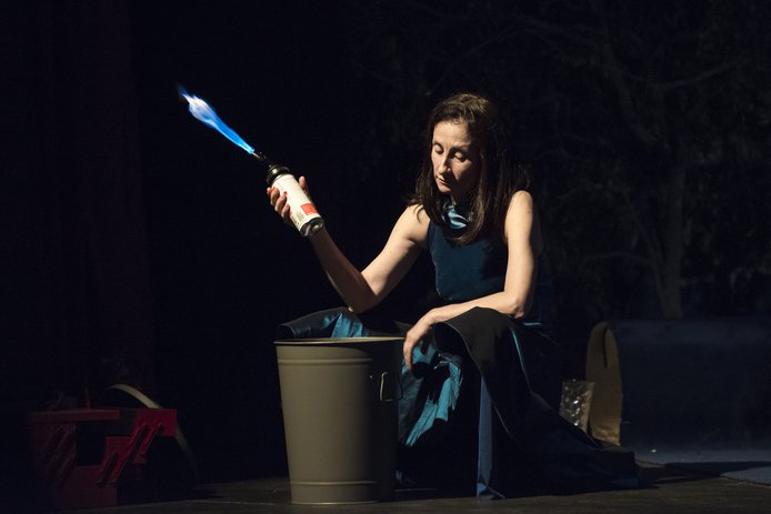 El espacio escénico precario de este montaje no recrea una época sino que representa el caos interior de Hedda. La dirección busca destacar el juego y humor que late en el texto a través de acciones inusuales. “Lo que más me ha interesado desde el punto de la dirección es destacar el desparpajo del inconsciente y quebrar la imagen convencional y lógica”, agrega Di Girolamo.