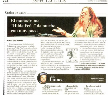 El texto de Isidora Stevenson fue uno de los ganadores de la categoría "Autor emergente" de la reciente XVI Muestra de Dramaturgia, y da vida a un montaje histórico y político protagonizado por la premiada Paula Zúñiga (Cárcel de Mujeres, Neva, La reunión, La vida doble).