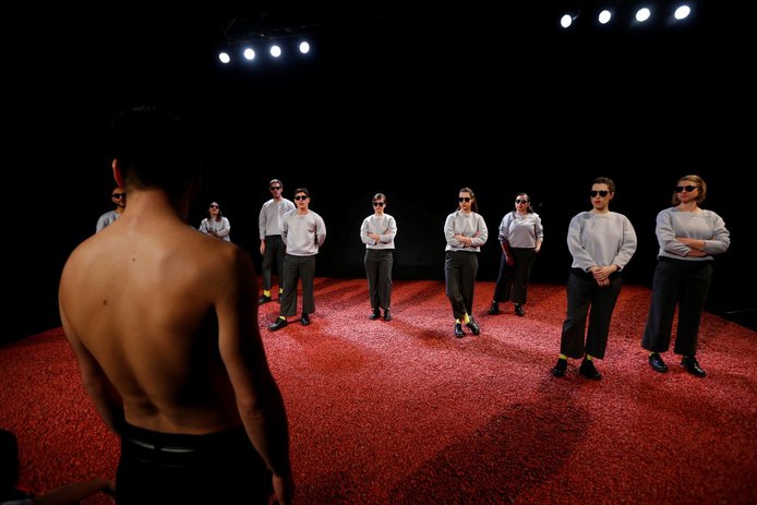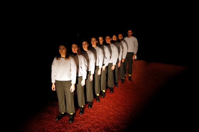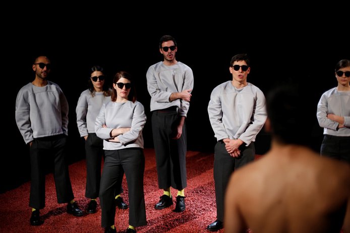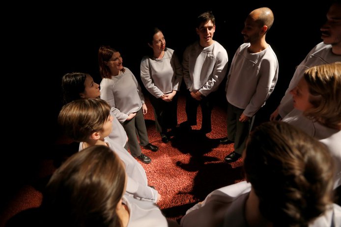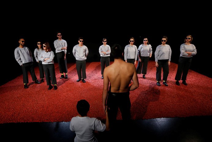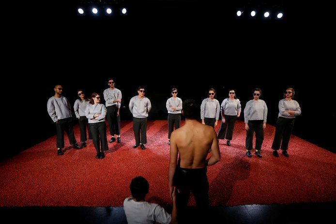 Horacio Pérez dirige a un elenco de 12 actores en el estreno de la nueva obra del dramaturgo Alejandro Moreno. Un texto poético que enfrenta un cuerpo individual a un cuerpo colectivo (el coro), “para reflexionar sobre el rol de la individualidad en un mundo cada vez más marcado por la producción en serie y la alienación”, dice el director. Actúan, entre otros, Luis Aros, Andrea García-Huidobro, Omar Morán y Paloma Toral.
