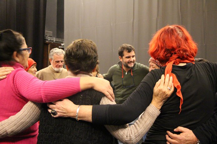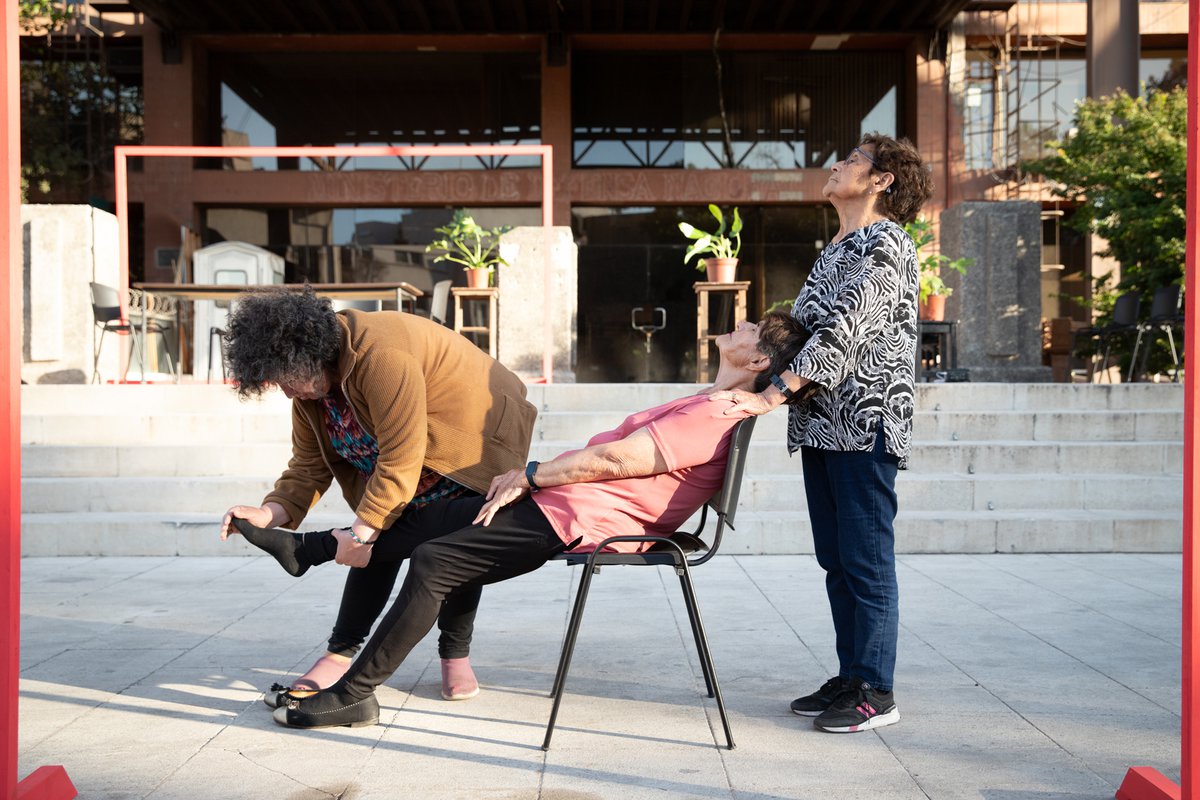 Sometidos a un estricto régimen de ensayos, conversaciones y juegos de rol, recorrieron lugares de Santiago y también de sus memorias, encontrando momentos que abrieron paso a algunas heridas. “Para mí esto es una como un desarrollo personal. Contamos vivencias nuestras, íntimas. (Marco) nos hizo contar una experiencia vivida donde volví 70 años atrás y eso me ha sanado, me ha hecho crecer. Recordamos a veces el pasado, pero no el ayer”, confidencia Luisa Labarca, participante.