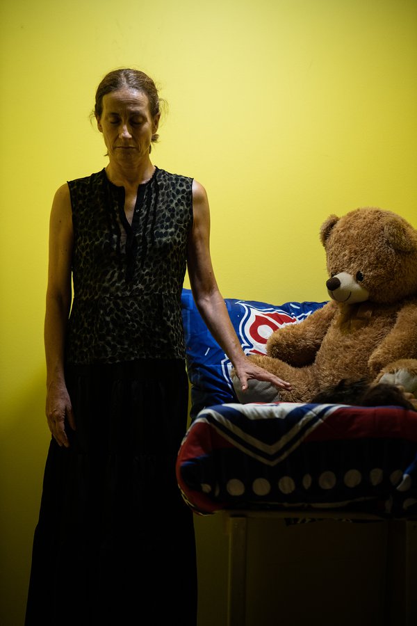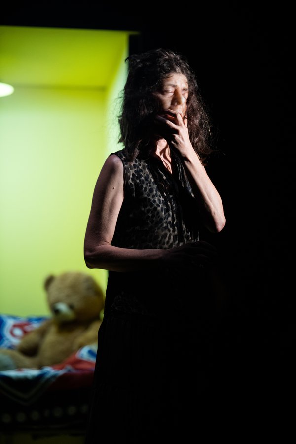 En escena, la actriz Amparo Noguera le da cuerpo al relato de Eliana Pérez para amplificar su voz y encarnar el dolor, el amor y la frustración ante la negligencia y el maltrato recibido por parte del Estado de Chile. Asimismo, encarna las reflexiones del personaje de Pirandello, una madre que no reconoce la muerte de su hijo y decide mantenerlo vivo, aún siendo consciente de la desaparición de su cuerpo.