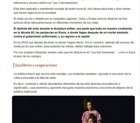 Chéjov se inserta de forma explícita en la obra cuando, buscando sobrevivir en Rusia, las divas buscan trabajo como actrices y son elegidas para protagonizar Las tres hermanas. Y Juan Gabriel suena en sus voces, al igual que Daniela Romo, Ricardo Montaner y Abba, entre otros.