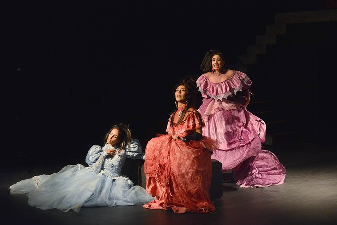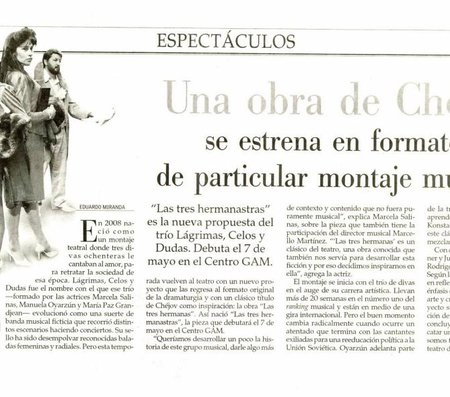 ¿Qué podría tener en común Juan Gabriel y Antón Chéjov? Sus creaciones comparten escenario en Las tres hermanastras. El nuevo estreno de teatro musical de Lágrimas, Celos y Dudas se inspira en el Las tres hermanas, clásico de Chéjov, situándolo en el imaginario kitsch ochentero hispanoamericano del trio de divas que encarna Marcela Salinas, Manuela Oyarzún y María Paz Grandjean.