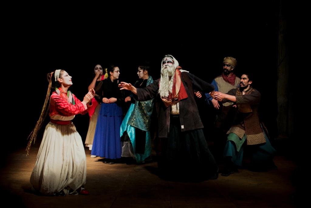 Lear o el origen de nuestra tragedia, se aleja del teatro de texto realista a través de una versión que se instala en Oriente, acorde a la estética, técnicas y emocionalidad de sus teatros tradicionales, como kabuki, khata khali y Ópera de Pekín, entre otros. “Nunca antes nos atrevimos a intentar ser la fuente. Hoy no la eludimos, trabajábamos como si fuéramos una compañía de Oriente. Es muy literal”, explica Jaime Reyes, director del montaje que interpretan 10 actores.