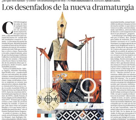Los millonarios es una comedia negra que muestra la discusión en la que preparan la defensa, donde exhiben sin pudor racismo y clasismo a borbotones. Suyo y mediático. Porque Alexis Moreno escribió la obra luego de investigar la prensa nacional desde el siglo XIX hasta poco antes del estreno, el 2014. “Es una puesta en escena que incomoda, que hace reír y que enrostra todo lo racistas y clasistas que como chilenos podemos llegar a ser”, escribió Marietta Santi en su crítica de la obra.