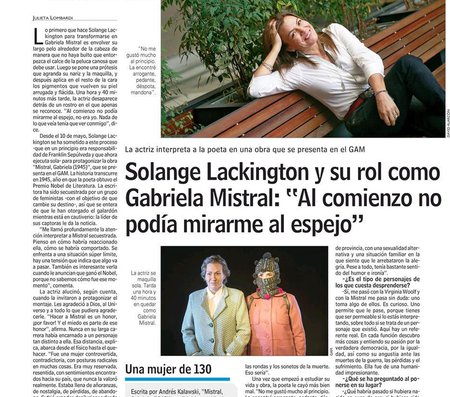 “Quería encontrar un tono que rescatara todos los conflictos en los que participó y su importancia intelectual y política. En este texto Gabriela Mistral se contradice, duda, manipula, se ofende, se jacta y se avergüenza. O sea, se parece un poco más a una persona y menos a un billete”