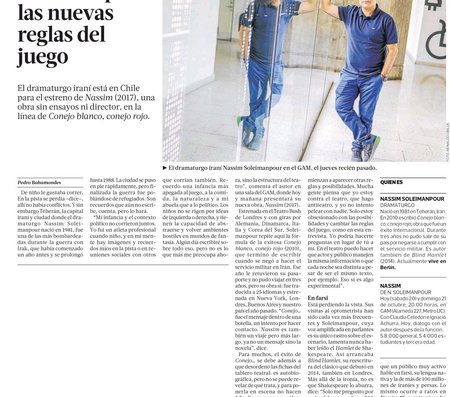 Elenco: Nassim Soleimanpour, Claudia Celedón (20 Oct) e Ignacio Achurra (21 Oct)