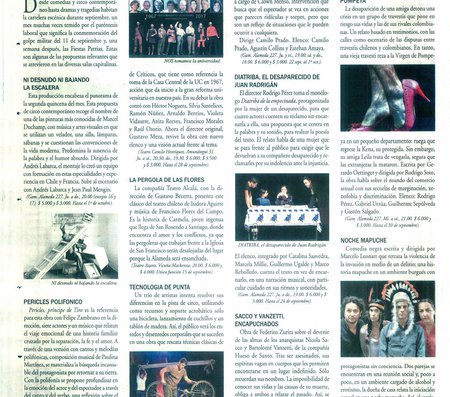 Compañía: La pieza oscura | Dirección y dramaturgia: Marcelo Leonart | Elenco: Daniel Alcaíno, Nona Fernández, Roxana Naranjo, Pablo Schwarz, Caro Quito, Felipe Zepeda | Diseño sonoro: Miguel Miranda | Diseño de iluminación: Andrés Poirot | Diseño de escenografía: Catalina Devia | Producción: Francisca Babul