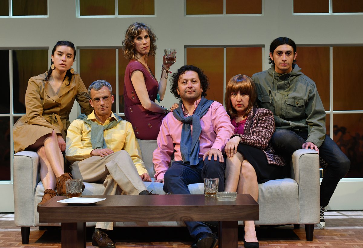 Nona Fernández interpreta a María Trinidad y Pablo Schwarz, a Juan Ignacio, su esposo y primo. Daniel Alcaíno y Roxana Naranjo encarnan a las visitas que no han sido invitadas, aunque al principio nadie parece darse cuenta de ello. Solo cuando su relato comienza a sonar amenazante los dueños de casa se preguntan quiénes son y qué hacen ahí ellos y los otros dos extraños que llegan de pronto, interpretados por Caro Quito y Felipe Zepeda.