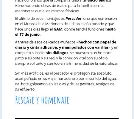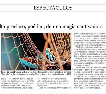 Botes, redes y mar. Con marionetas y sin palabras esta obra retrata el oficio de los pescadores artesanales. Un montaje de la compañía Silencio Blanco.