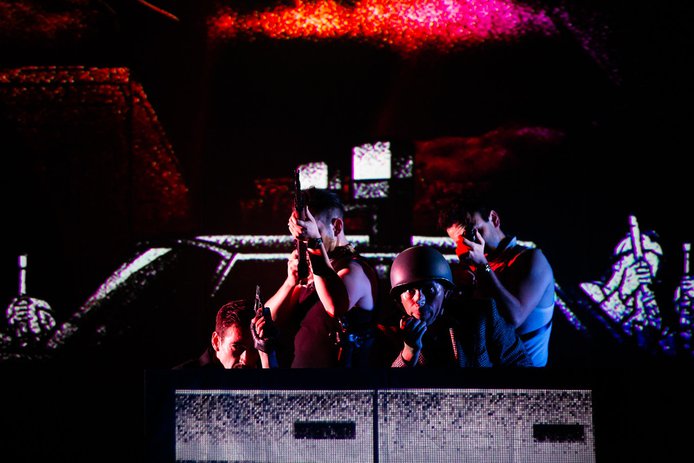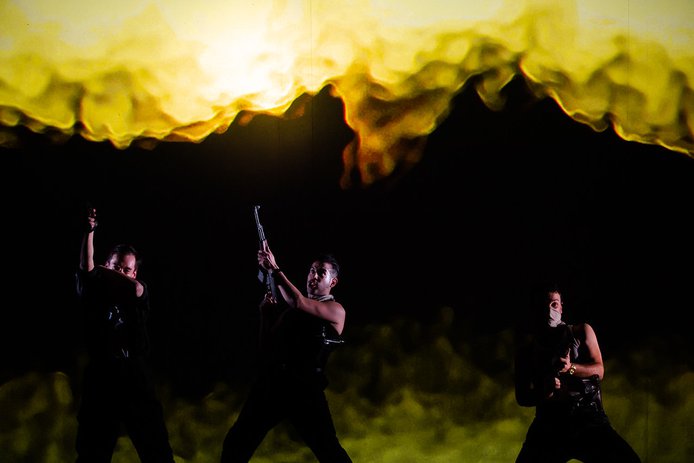 Plata Quemada no sólo devela esta trama política y policial, sino que además de un modo audaz, expone la mecánica escénica, quedando ésta totalmente a la vista del espectador, develando así la complejidad que significa el accionar de la partitura escénica que combina la materialidad y la virtualidad en la cual TeatroCinema se basa para construir sus relatos.