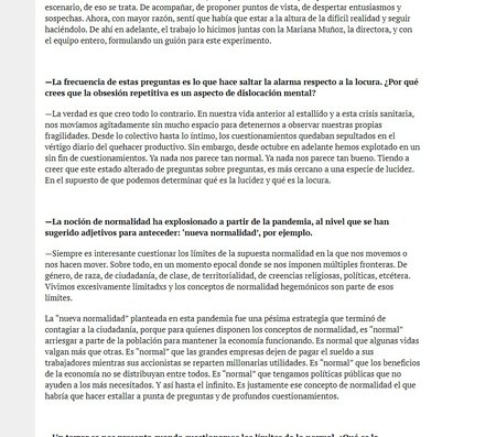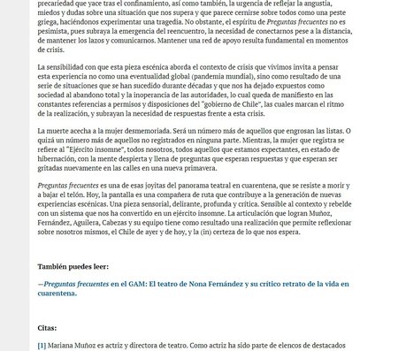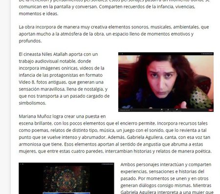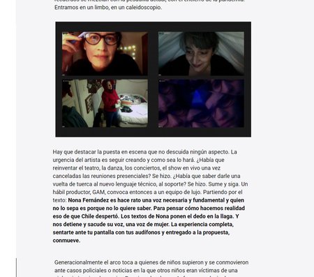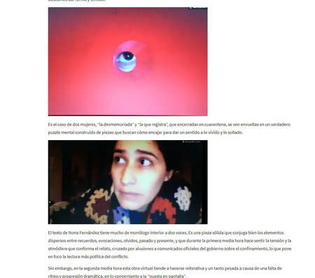 Un texto de Nona Fernández que retrata complejidades, dudas y delirios de la vida en cuarentena. Teatro, música y audiovisual se unen en este diálogo fragmentado sobre la inquietud presente y traumas del pasado.