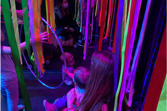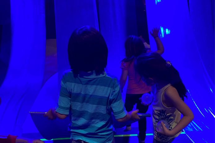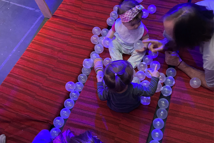 Un espacio que estimula la experimentación y la creación. Está diseñado para la primera infancia (1 a 5 años + su acompañante) a través de la interacción con diversos objetos, materialidades, sonidos, e iluminación. El tema en esta ocasión es el ciclo del agua, para que niñas y niños aprendan de manera didáctica la importancia de este elemento.