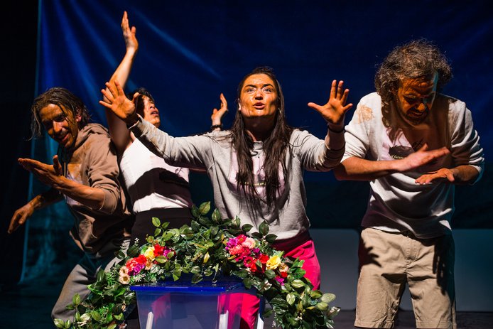 Director Sebastián Squella | Asistente de Dirección y audiovisualista Nicolás Calderón | Diseñador Integral Javier Pávez | Fotógrafo Paul Osses | Producción Victoria Iglesias y Valeria Aguilar | Elenco Rodrigo Florechaes, Camilo Venegas, Valeria Aguilar y Victoria Iglesias | Proyecto Fondart Regional - Convocatoria 2018, con el apoyo de Fundación Teatro a Mil y Goethe Institut.