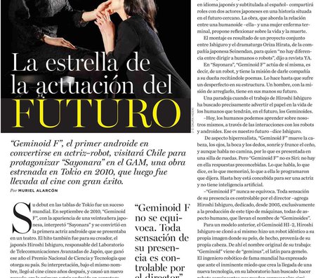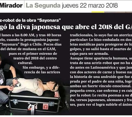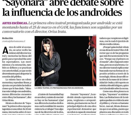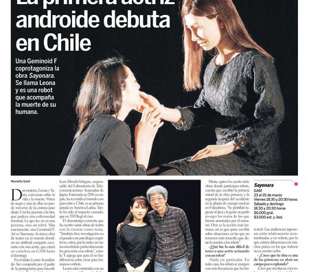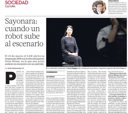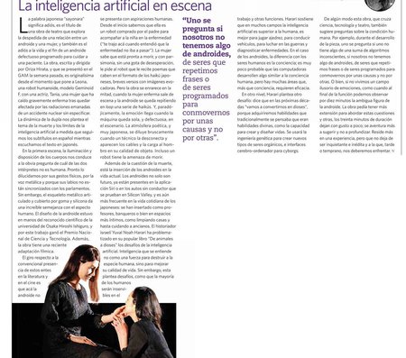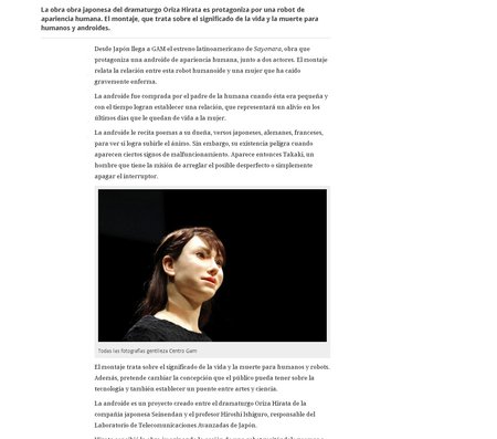 Estreno en Latinoamérica. Desde Japón llega la primera obra protagonizada por una androide actriz. Un montaje sobre el significado de la vida y la muerte para humanos y robots.