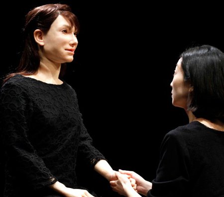 La androide femenina, un robot de aspecto muy similar a un humano, es capaz de hablar y mostrar sentimientos a través de gestos y tonos de voz. Su cuerpo es articulado y tiene una textura similar a la piel, pero no puede caminar. Ella integra el elenco de la obra junto a los actores humanos Makiko Murata y Yozo Shimada.