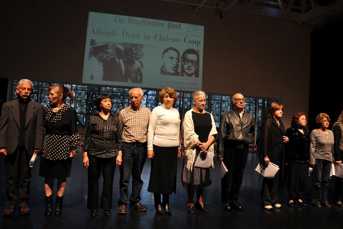 “Trabajé dos meses con técnicas de improvisación para que exploraran en sus capacidades escénicas y luego comenzó la investigación”, advierte sobre el laboratorio que contempló el encuentro del elenco con Irma Cáceres de Almeyda y Moy de Tohá. “Fue muy interesante escuchar a estas dos mujeres que estuvieron a cargo en 1972, que dieron inicio a las actividades del Centro Cultural Metropolitano Gabriela Mistral en la época, que abrieron los famosos comedores tras la UNCTAD III, y que vieron cómo cerraba sus puertas para el golpe de estado”, recalca.