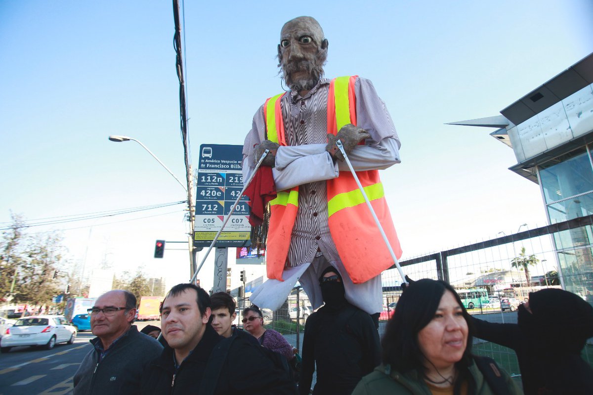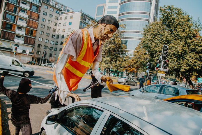 Una intervención con títeres gigantes protagonizada por una majestuosa marioneta de 4 metros de altura, llamada Cristián “El gran chico”, un anciano de más de 70 años en situación de calle, que día a día recorre la urbe de Santiago limpiando parabrisas de autos. Parte de Famfest 2021.