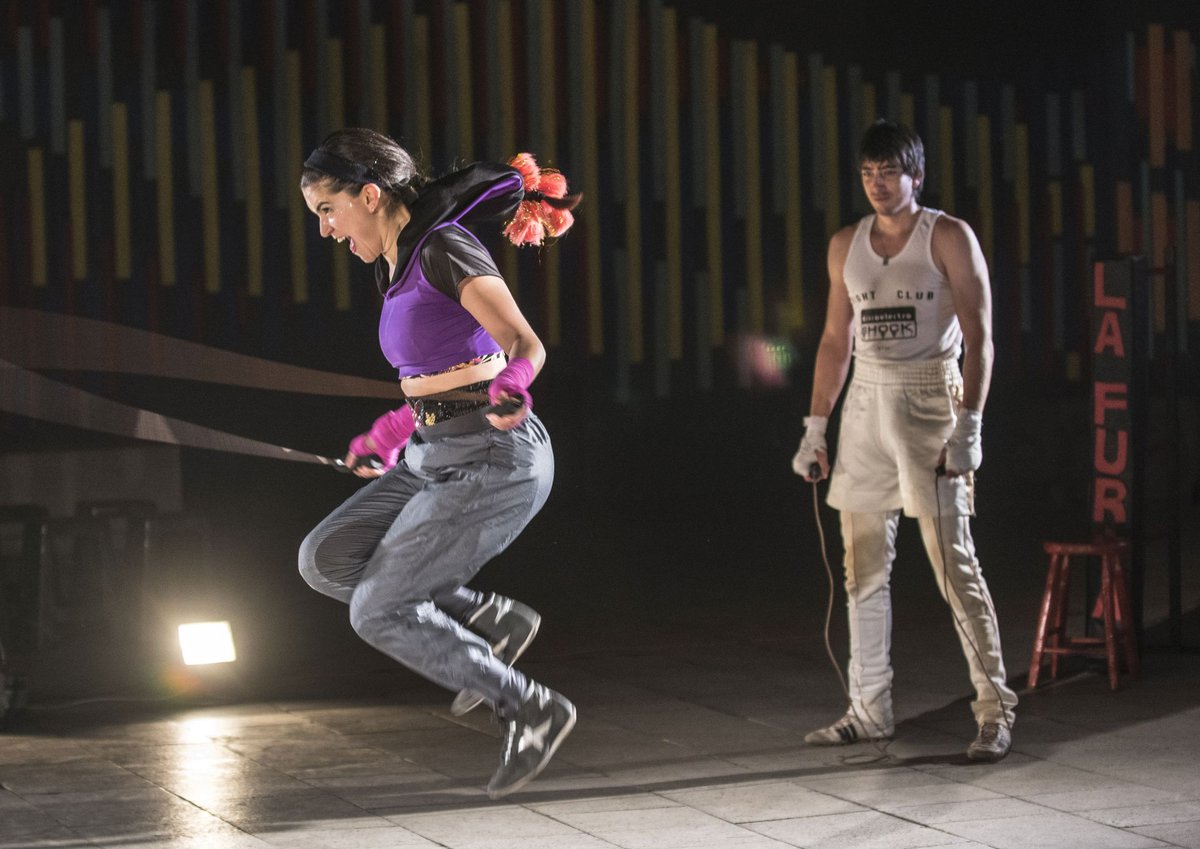 El DJ Enzo Donato se sitúa en el centro del escenario que evoca un ring. Su música acompaña las líneas que mayoritariamente son hiphopeadas y bailadas por los cuatro intérpretes. Un espectáculo producido por CONTRATAQUE Escena Callejera y FITAM.