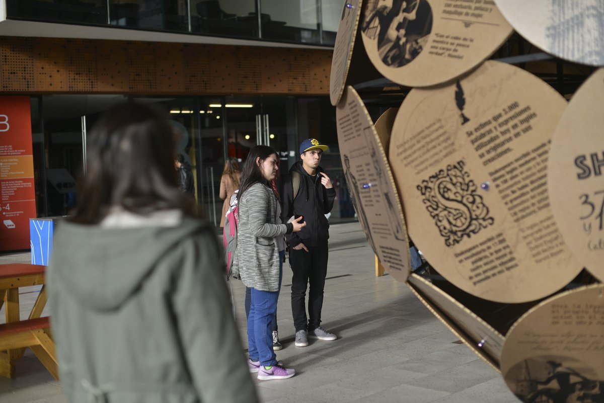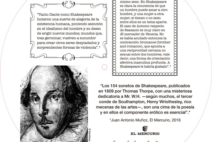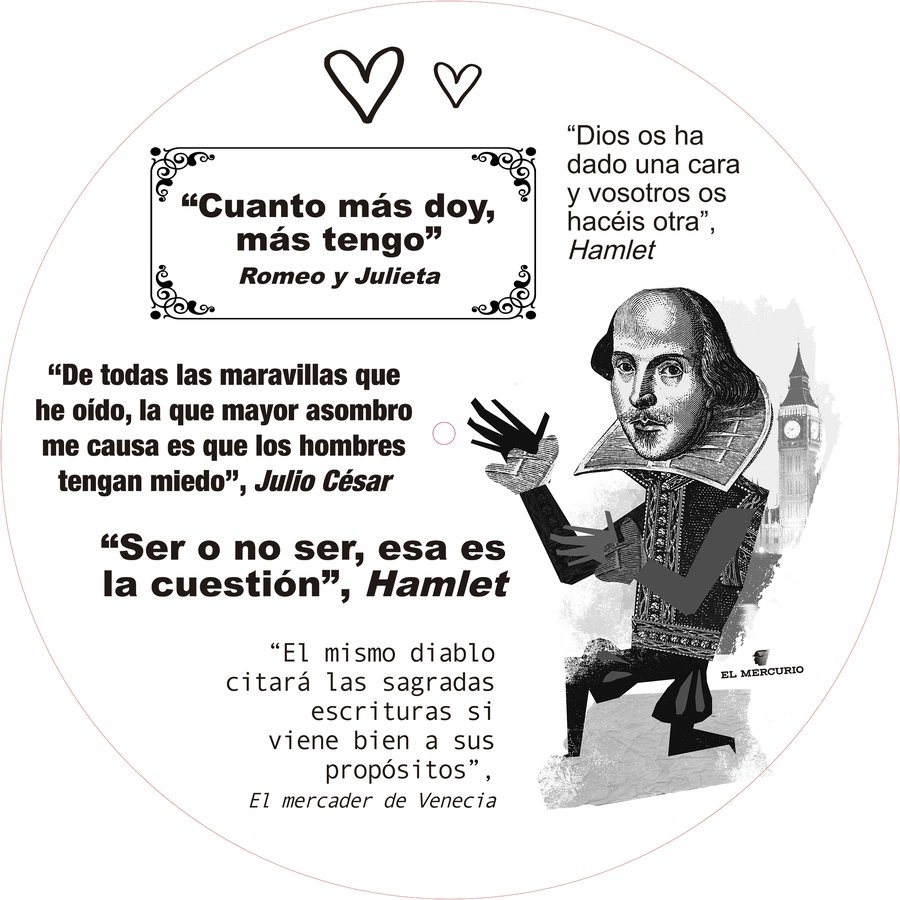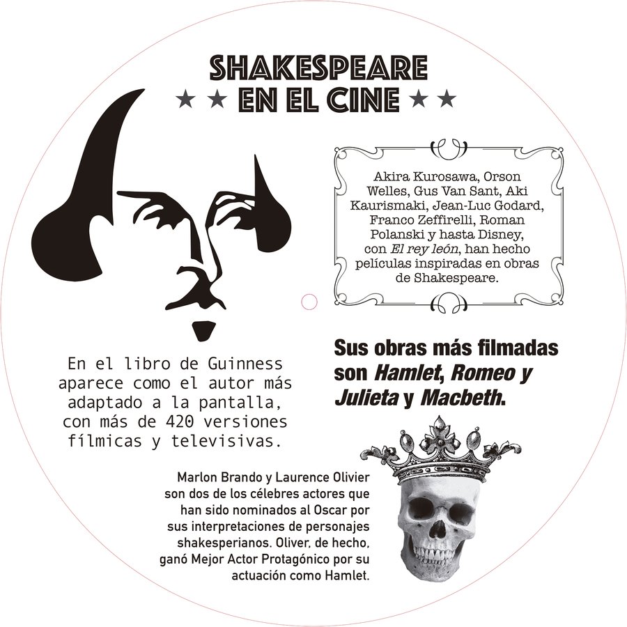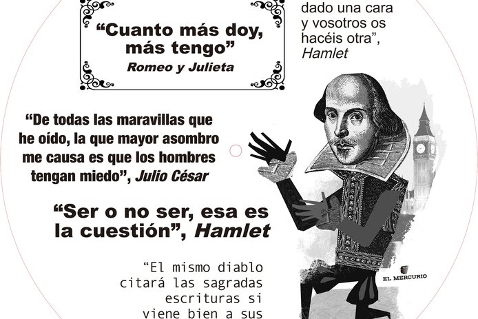 Los círculos que forman la instalación contienen hechos sobre su vida, datos anecdóticos, reflexiones de su obra y citas de sus obras más reconocidas como Romeo y Julieta, El mercader de Venecia, Macbeth y Hamlet.