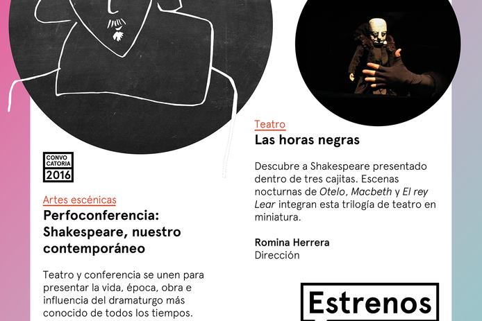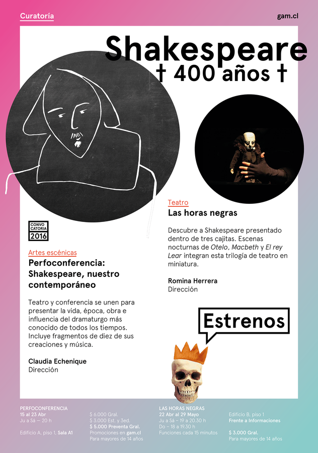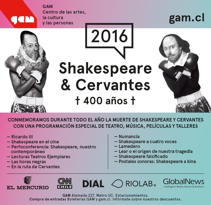 Conmemorando los 400 años de la muerte del dramaturgo inglés William Shakespeare, GAM realizó especiales actividades, desde programación artística de teatro, ciclos de cine, hasta una instalación en plaza central y una campaña gráfica y audiovisual.
