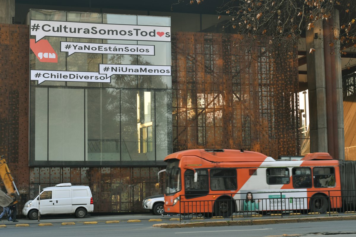 Niños acompañados, diversidad e inclusión y no más femicidios, son las tres banderas que el centro cultural GAM decidió destacar en su fachada que mira a la Alameda. Desde el viernes 4 de agosto, los transeúntes podrán leer el mensaje “Cultura somos todos”, con las campañas alusivas a “Lo niños ya no están solos”, “Ni una menos” y “Chile diverso”.