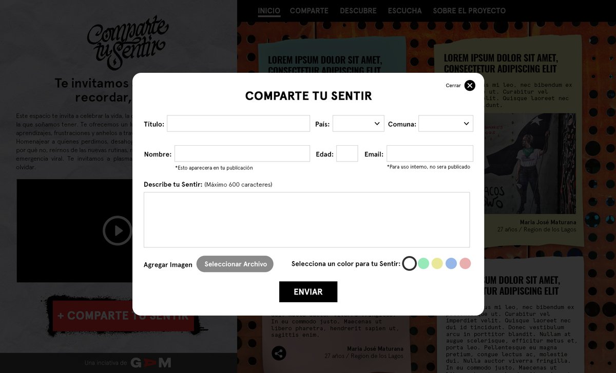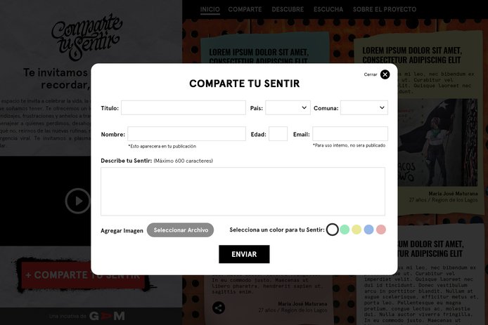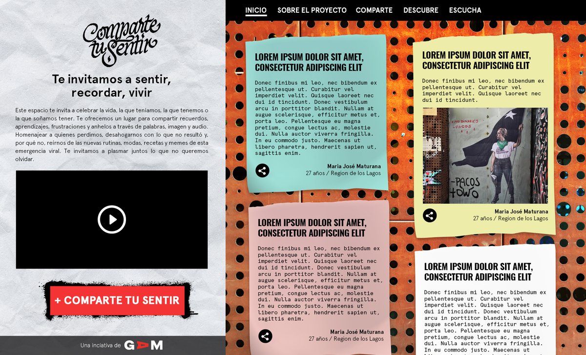 “Comparte tu sentir” fue una iniciativa del equipo de Comunicaciones GAM para homenajear a las víctimas de la pandemia cuyas familias y seres queridos no tuvieron un espacio de expresión. Se buscó dar cabida al dolor, al luto que parecía en suspensión por las medidas de aislamiento.