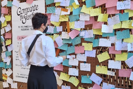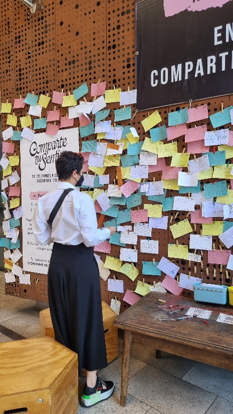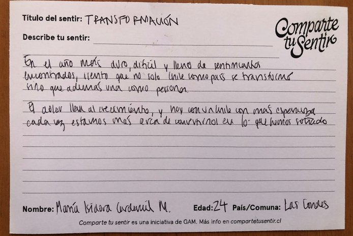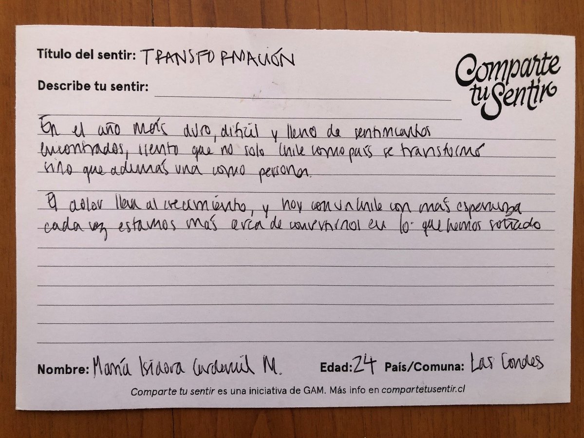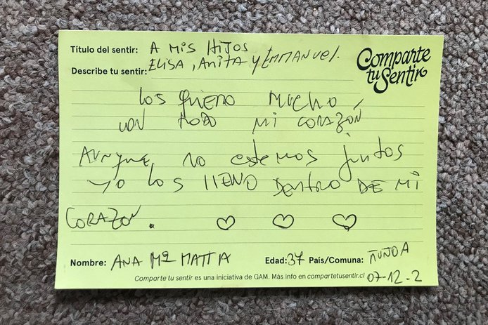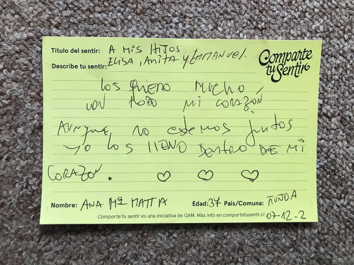 En noviembre de 2021, la campaña presenta su versión en presencial con una intervención en el edificio GAM para que los visitantes del edificio puedan dejar dibujos, pensamientos y memorias desde tu puño y letra. Utilizando las medidas de seguridad y protocolo COVID, son invitados a participar usando un papel para escribir un homenaje a quienes partieron o compartir recuerdos, frustraciones, aprendizajes, sueños, en un marco de respeto. Luego de escribir, las personas pueden colgar el escrito en la pared con una pinza de madera.