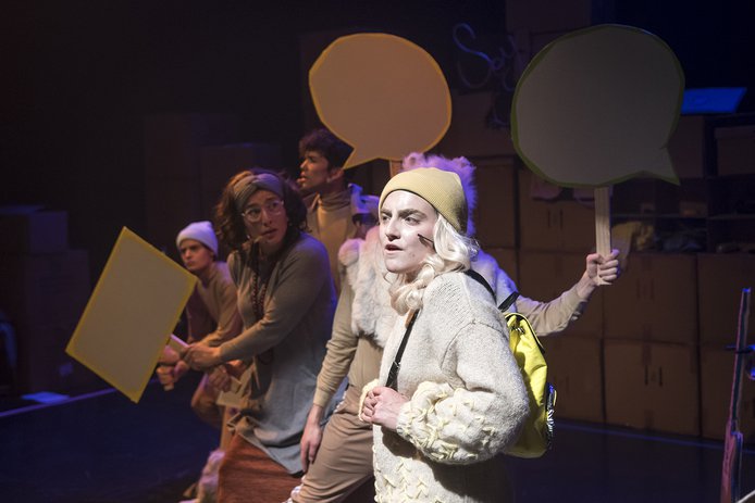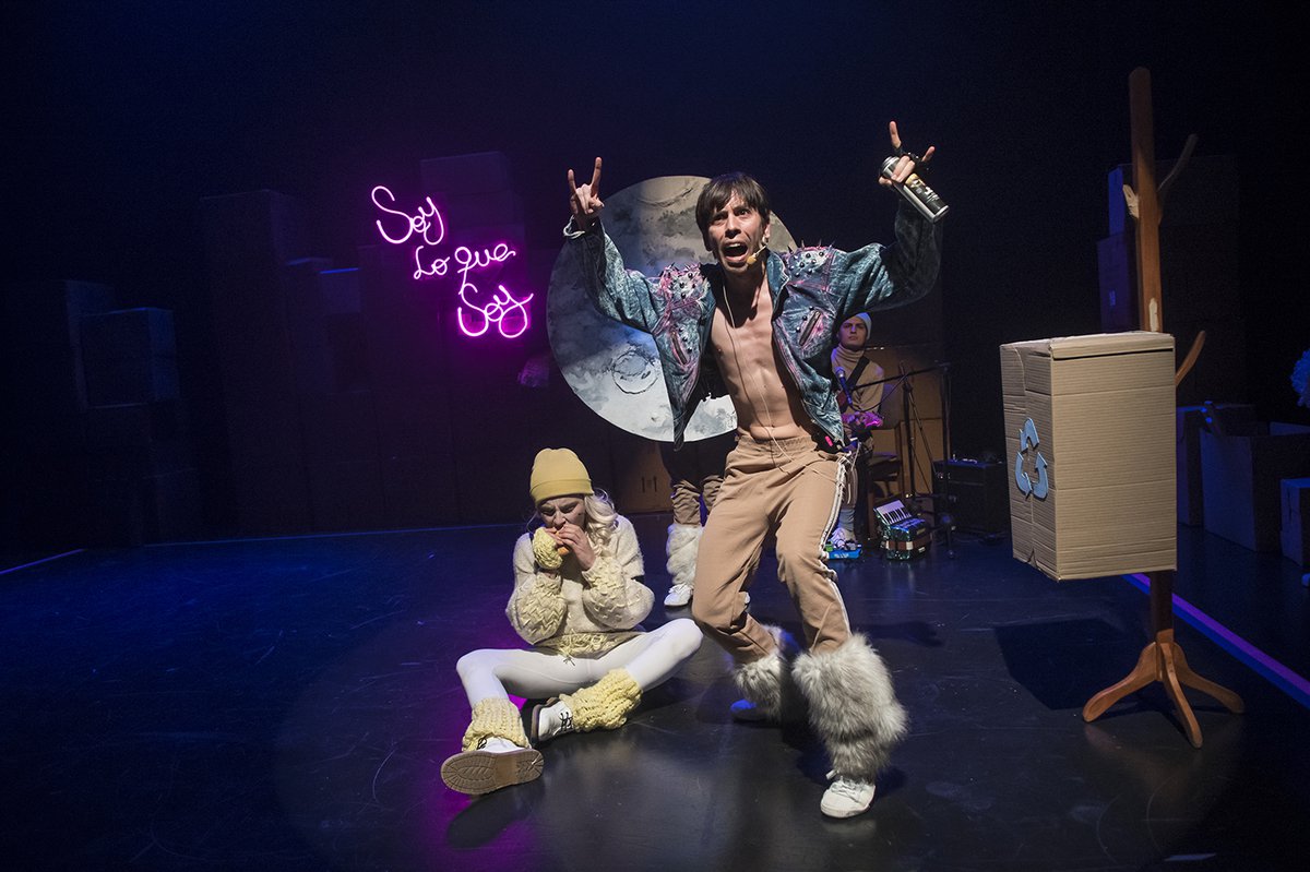Actuación, música y objetos realizados con materiales reciclados y cartón van construyendo este viaje, interpretado por cinco actores y un músico. Una obra donde la danza y el canto son los mensajes de comunicación para hablar de prejuicios y de querer ser otra persona.