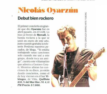 El circuito se llenará de música en vivo con la presentación gratuita de los grupos Fármacos y Prehistóricos en The Barber Club Vikingo (José Victorino Lastarria 202). Por su parte, el reconocido actor Nicolás Oyarzún, lanzará su banda de rock alternativo Mercalí, en el GAM, previa inscripción en www.barrioarte.cl