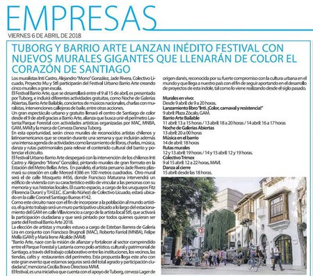 Los murales y actividades son posibles gracias al auspicio de TUBORG, el patrocinio de la Ilustre Municipalidad de Santiago, Metro y la Corporación Regional de Turismo, y producidos por Galería Lira.