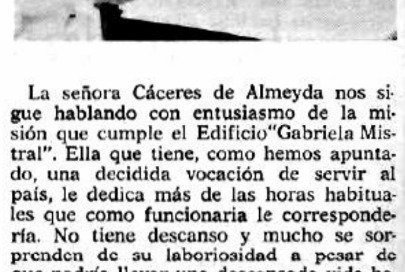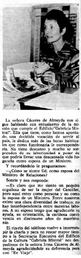 Entrevista a Irma Cáceres, Secretaria ejecutiva del Centro Metropolitano Gabriela Mistral, de la revista “En Viaje”, 1972, .ed. Ferrocarriles del Estado: