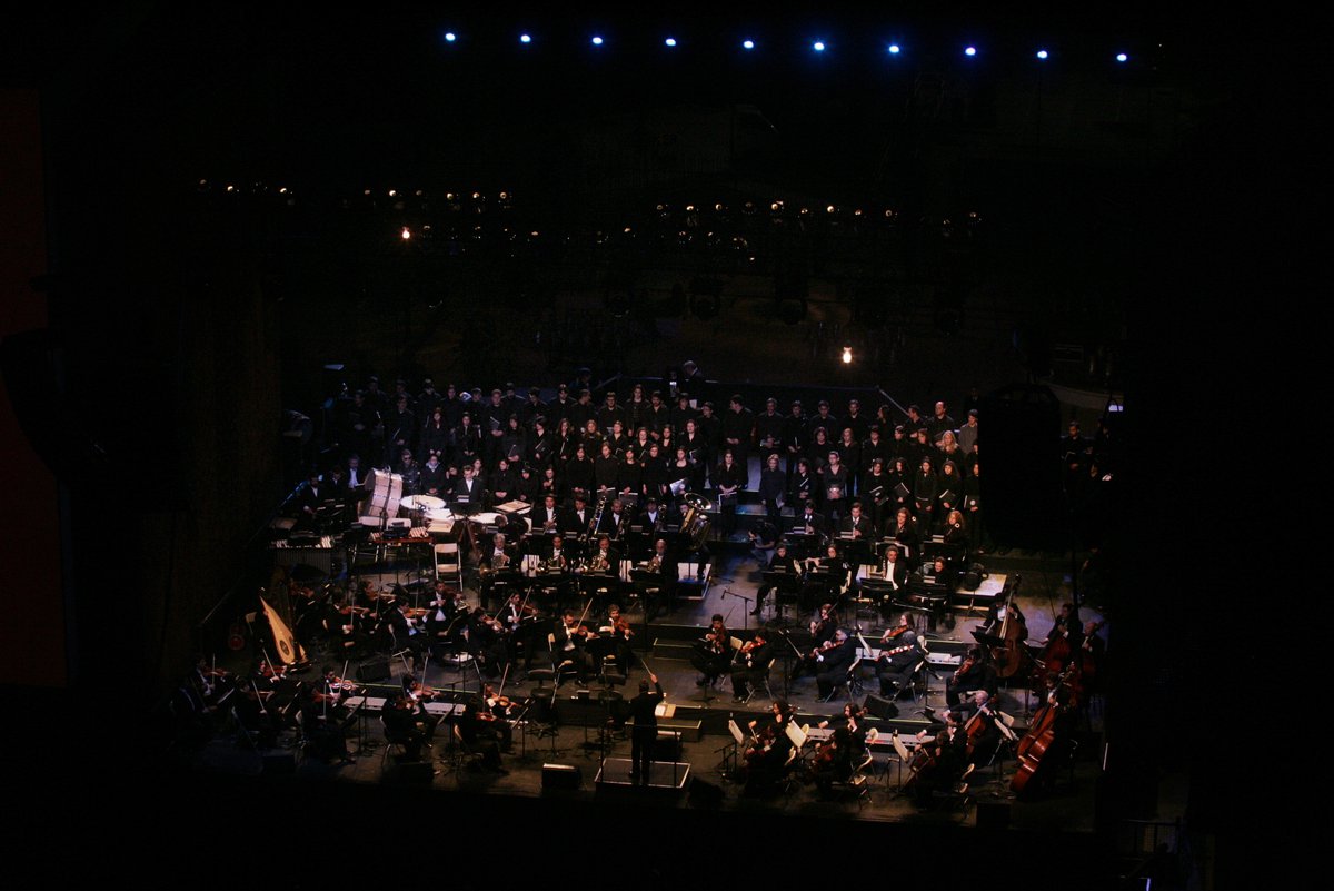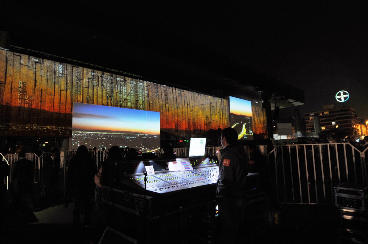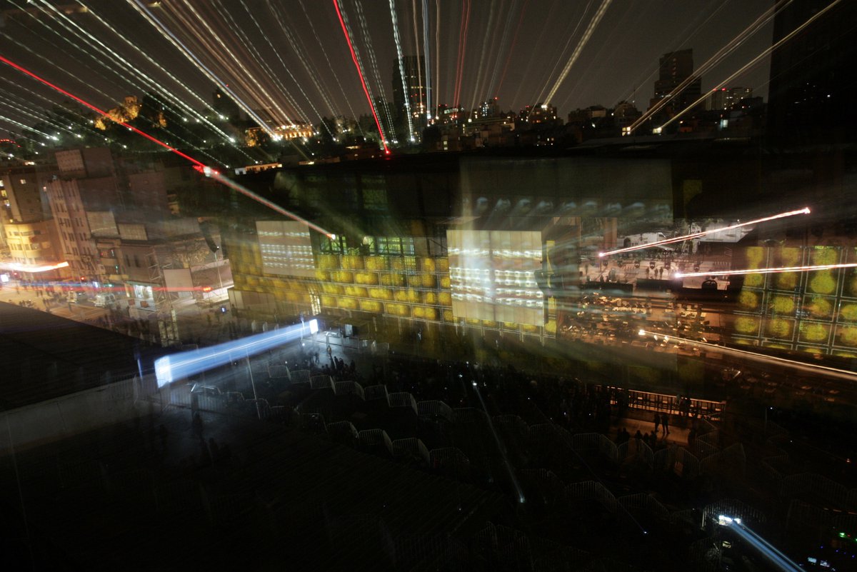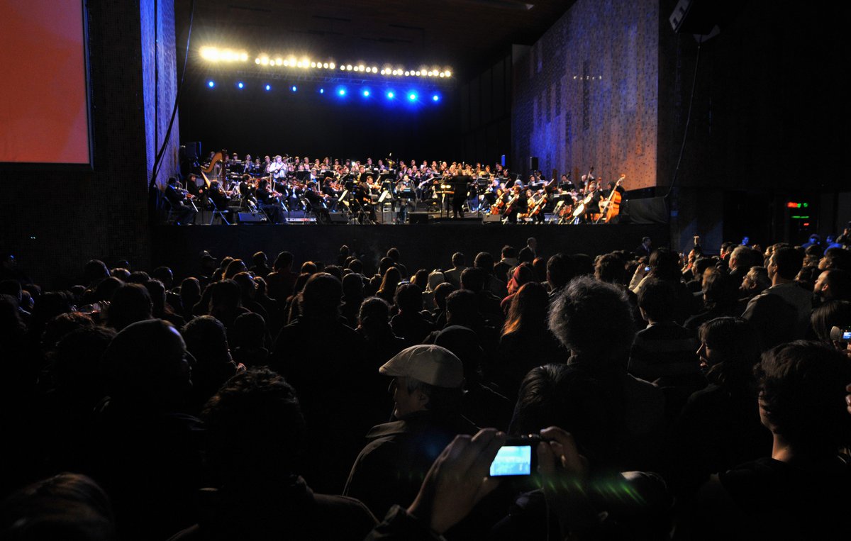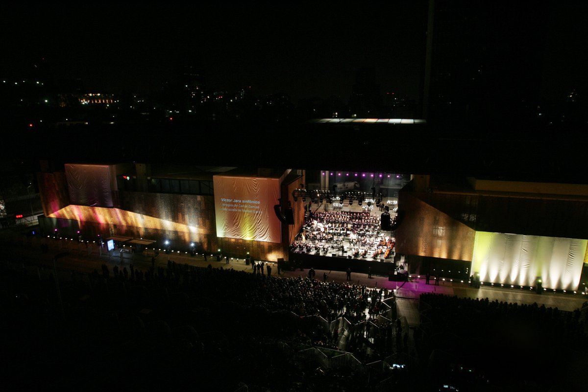 El edificio del centro cultural sirvió de telón y escenario para proyecciones visuales y un concierto que recreó versiones sinfónicas de los catálogos de Violeta Parra y Víctor Jara a cargo de la Orquesta de la Universidad de Concepción (bajo la dirección del maestro Rodolfo Fischer), los cantantes Claudia Acuña y Manuel García, y los coros de la USACH y UNAB.
