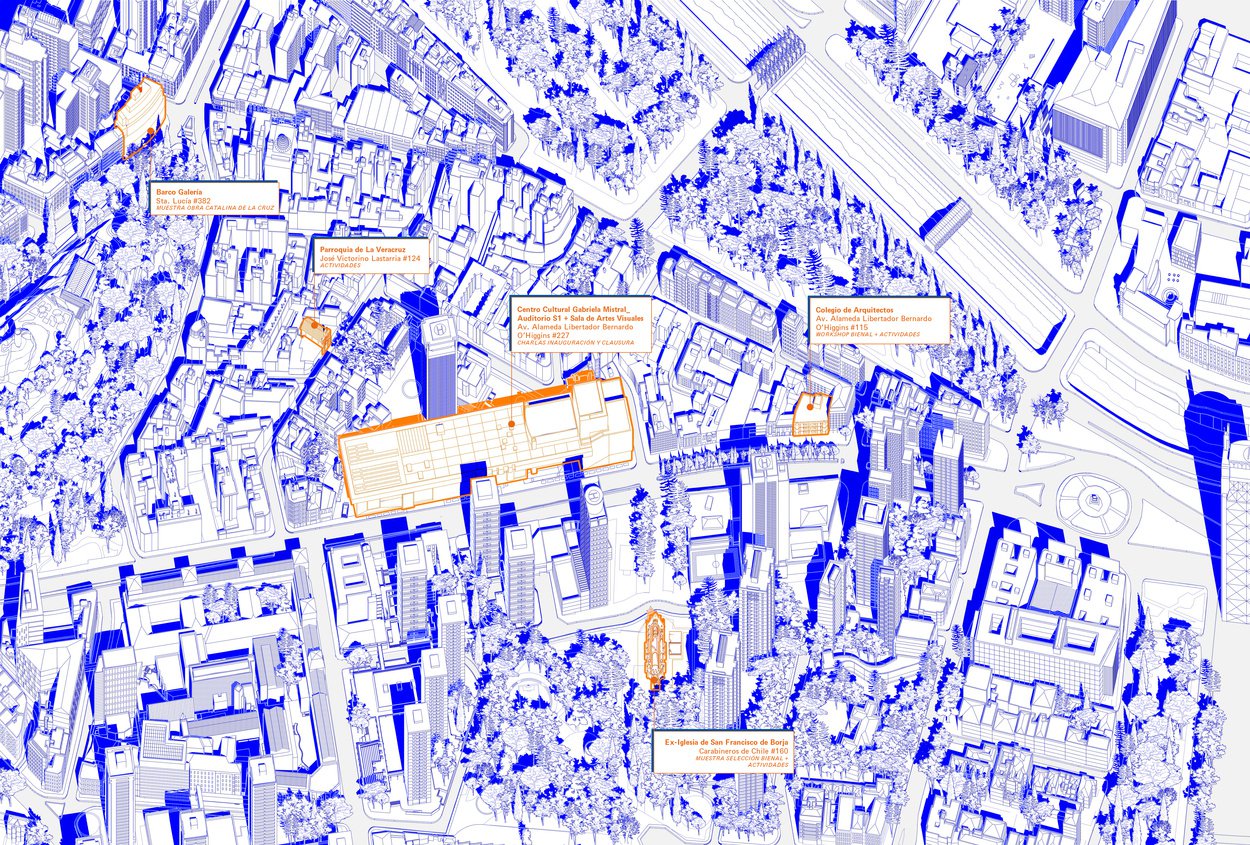 La Bienal será un espacio de exhibición y discusión sobre la necesidad de conservar, modificar y reprogramar estructuras que persisten en un estado de indefinición, pero encierran futuros posibles. Esta edición se desplegará como un circuito, ocupando distintos puntos del eje Alameda de Santiago, tensionando espacios icónicos, confrontando su historia, su actual estado de obsolescencia y su potencial transformador. Luego, la exposición circulará por distintas regiones, trasladando el debate a territorios donde la regeneración y revitalización urbana es inaplazable.